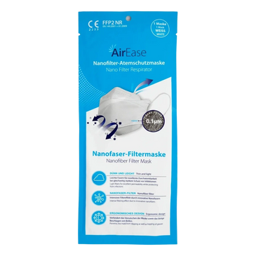 Die Air EASE erfüllt alle Anforderungen der EU Norm DIN EN 149 und ist eine vollumfänglich CE-zertifizierte FPP2 Maske.